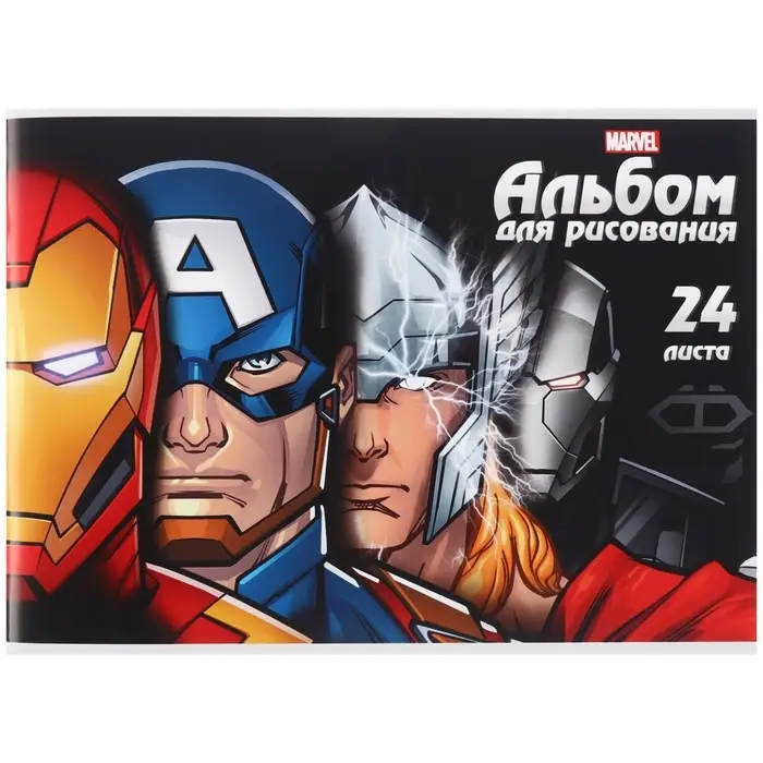 Альбом для рисования А4, 24 листа 100 г/м², на скрепке, «Мстители»