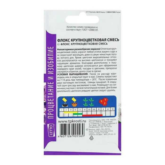 Семена цветов Флокс Крупноцветковая смесь, О, 0,2г