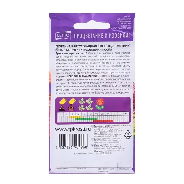 Семена цветов Георгина Веселые ребята, О, 0,2г