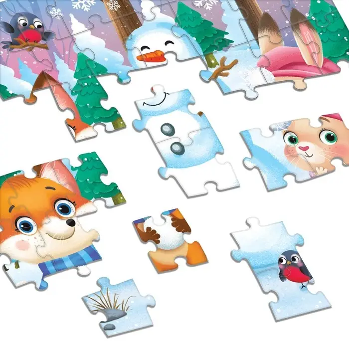 Пазл «Зимние забавы» — то, что нужно для полезного и интересного досуга! Такой подарок поможет ребёнку скрасить ожидание Нового года, а также потренировать мелкую моторику, внимательность, логическое мышление и память.