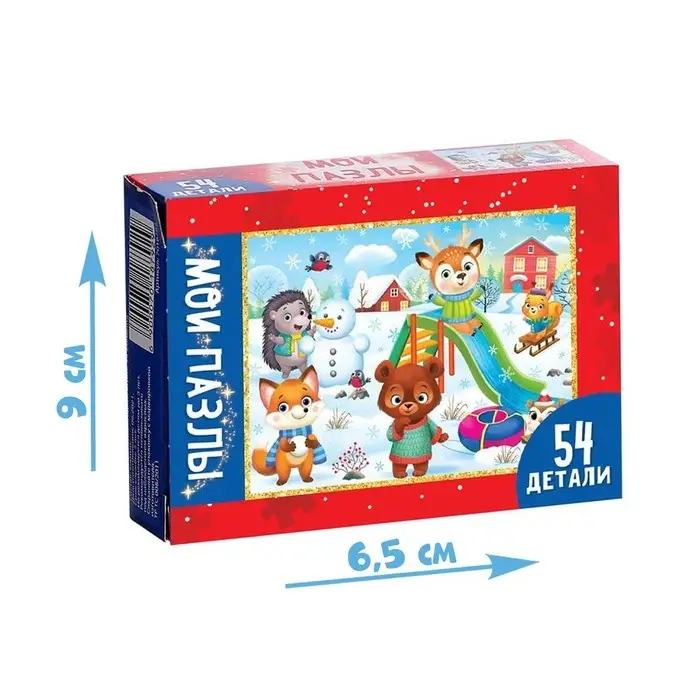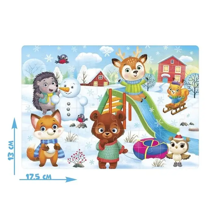 Ребёнок соберёт все 54 детали в одно целое и получит красочную картинку размером 17,5 × 13 см.
