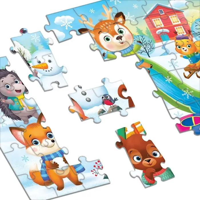 Пазл «Новогодние игры» — то, что нужно для полезного и интересного досуга! Такой подарок поможет ребёнку скрасить ожидание Нового года, а также потренировать мелкую моторику, внимательность, логическое мышление и память.