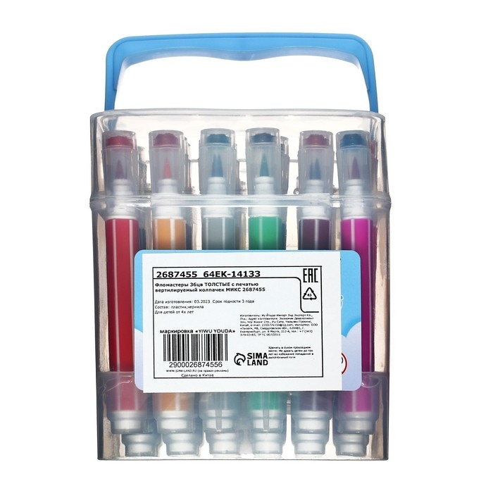 Фломастеры 36 цветов, с печатью, вентилируемый колпачок, МИКС