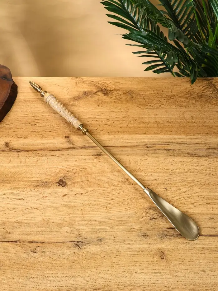 Ложка для обуви "Еловая шишка" латунь, манговое дерево 56 см