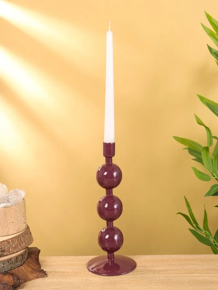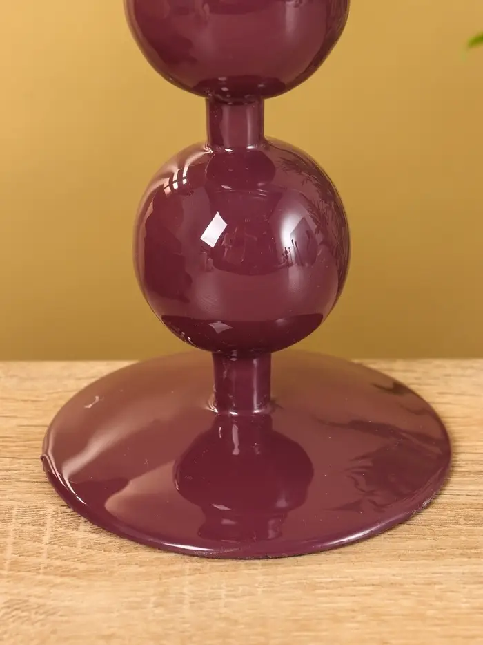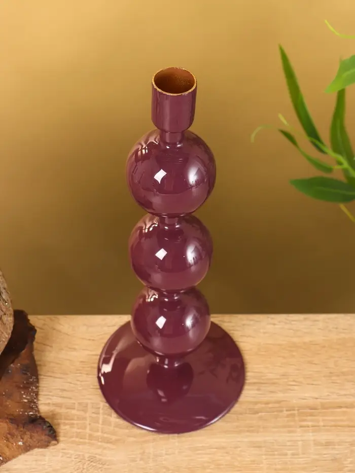 Подсвечник на 1 свечу текстурный "Баклажановый" с 3 сферами 10х10х25 см