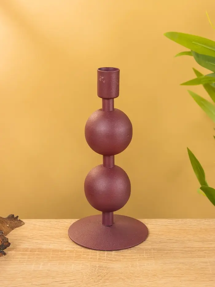 Подсвечник на 1 свечу "Баклажан" с 2 сферами 8,5х8,5х18 см