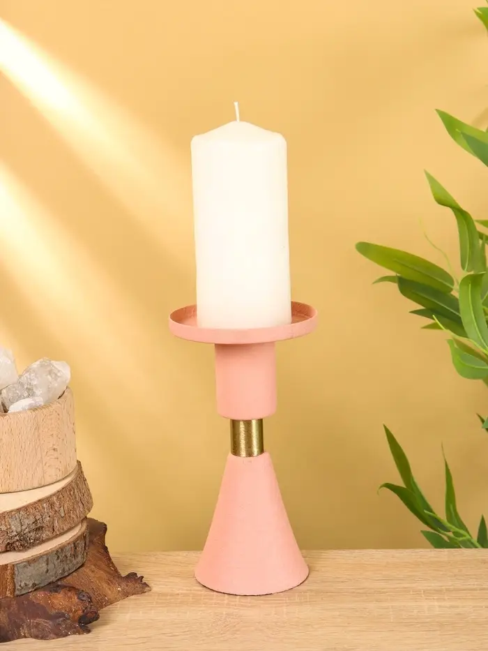 Подсвечник на 1 свечу текстурный "Пудровый" 10,5х10,5х19,5 см