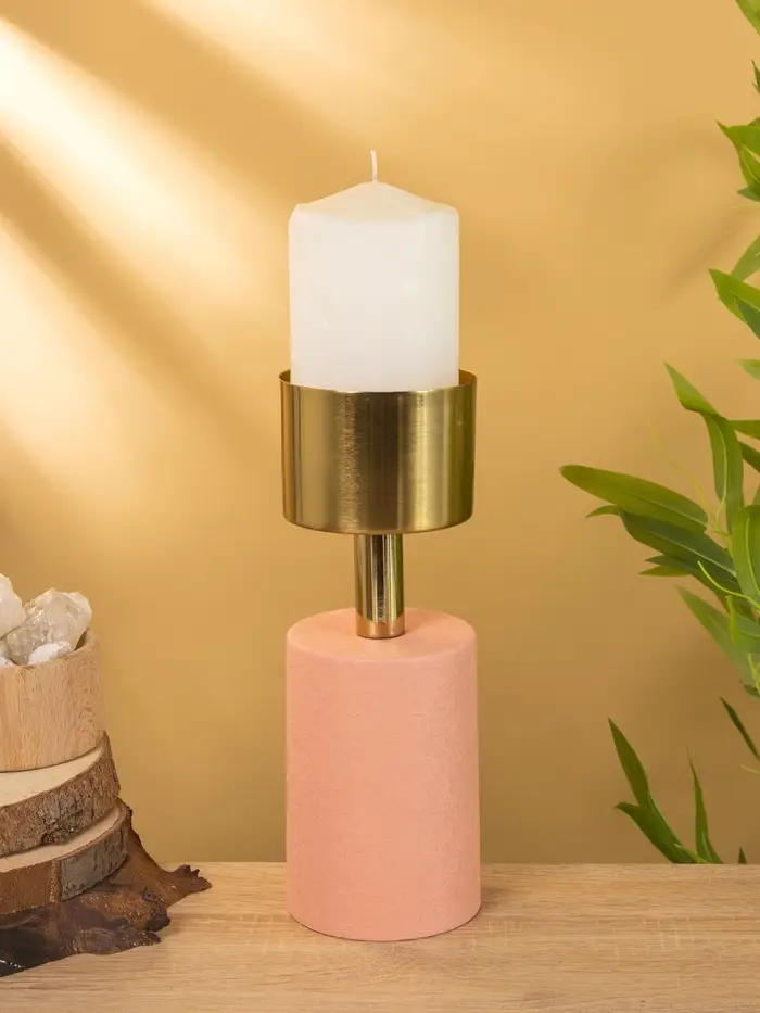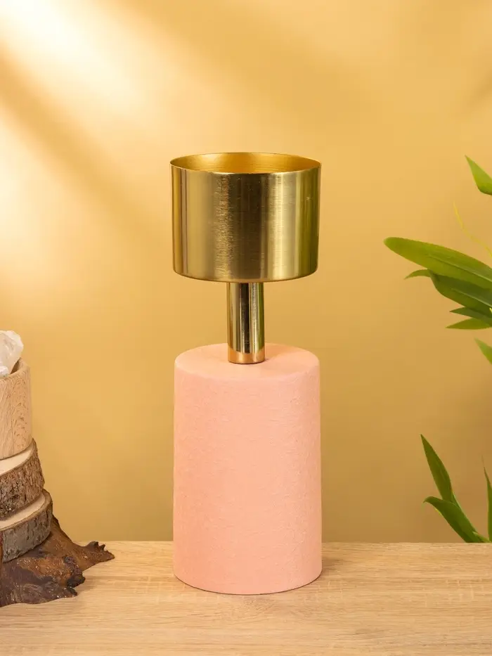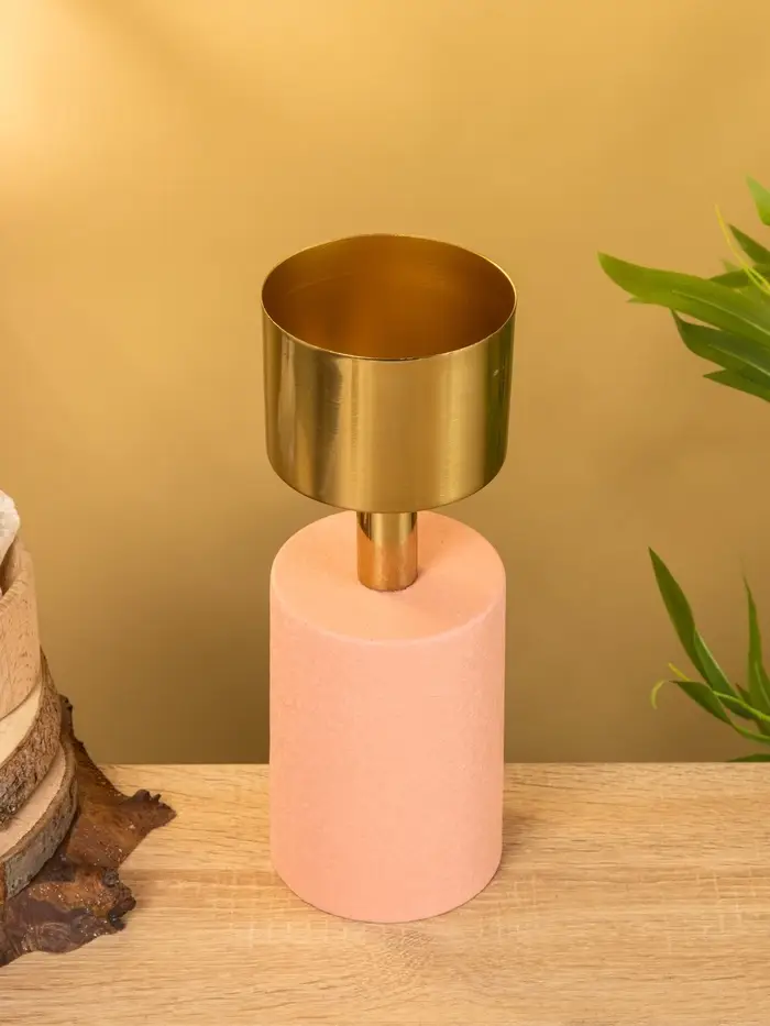 Подсвечник на 1 свечу "Кубок" пудровый с золотом 10х10х28,5 см