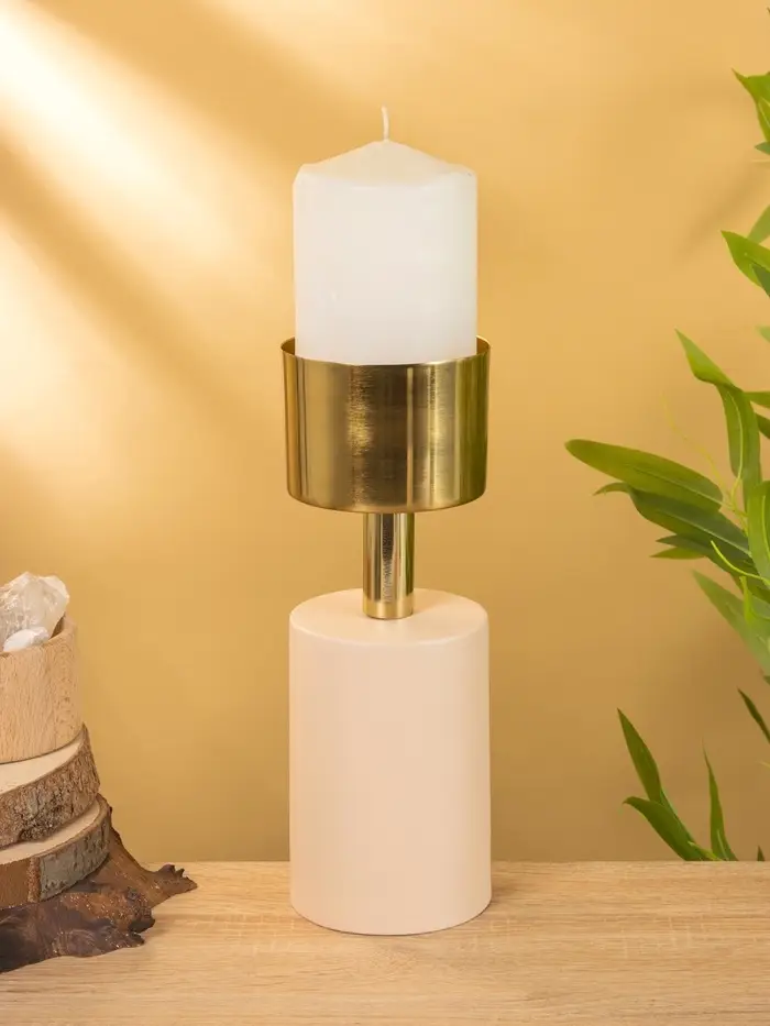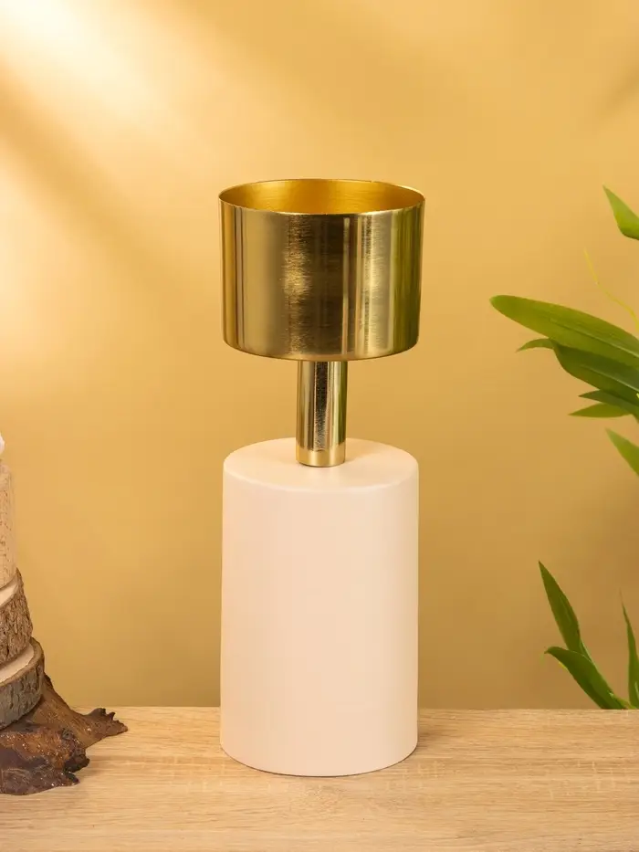 Подсвечник на 1 свечу "Кубок" бежевый с золотом 10х10х28,5 см