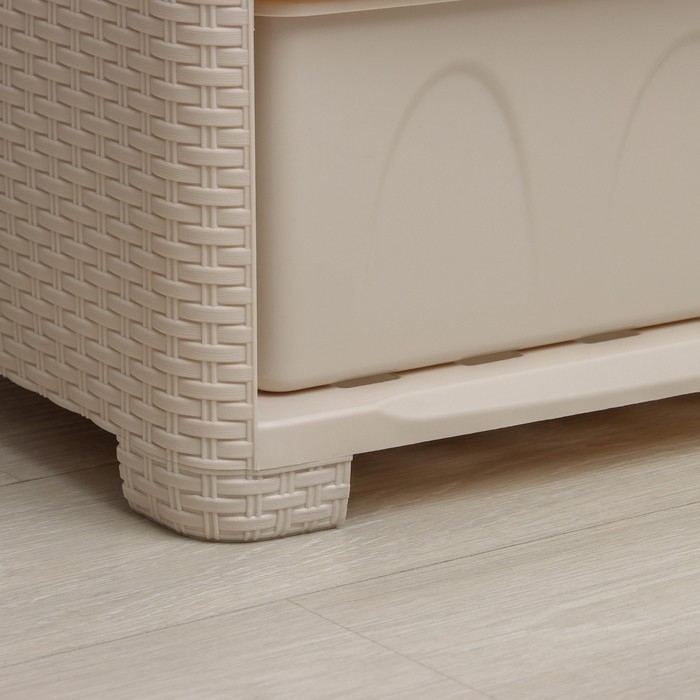 С помощью практичного пластикового комода вы правильно организуете хранение вещей. Изделие имеет жёсткую конструкцию за счёт цельных боковых стенок. Отсутствие острых углов делает его безопасным для ребёнка. Комод изготовлен из экологически чистого материала, не содержит вредных веществ.