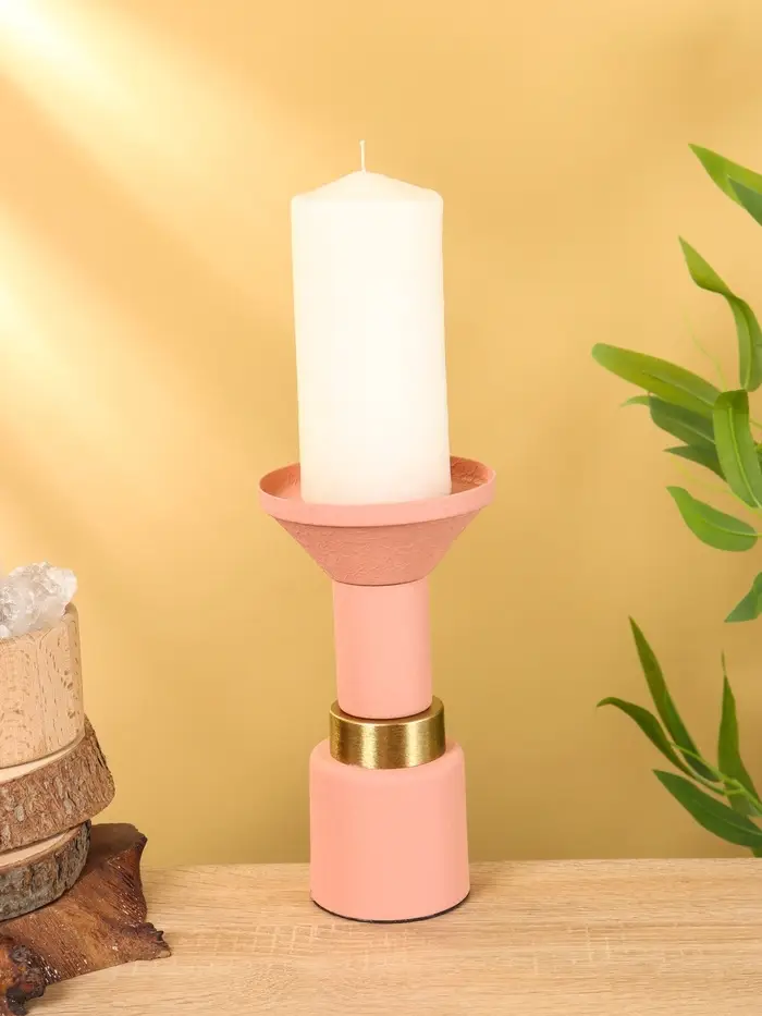 Подсвечник на 1 свечу текстурный "Пудровый" 10,5х10,5х20 см