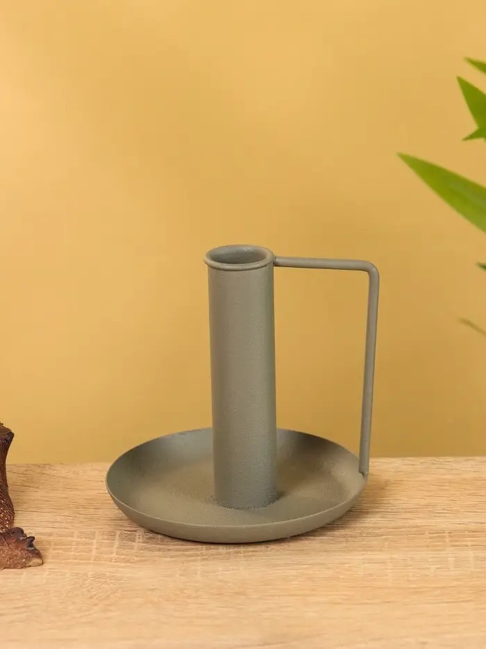 Подсвечник на 1 свечу текстурный с ручкой и блюдцем «Графит», 10×10×9.5 +/- 0.5 см