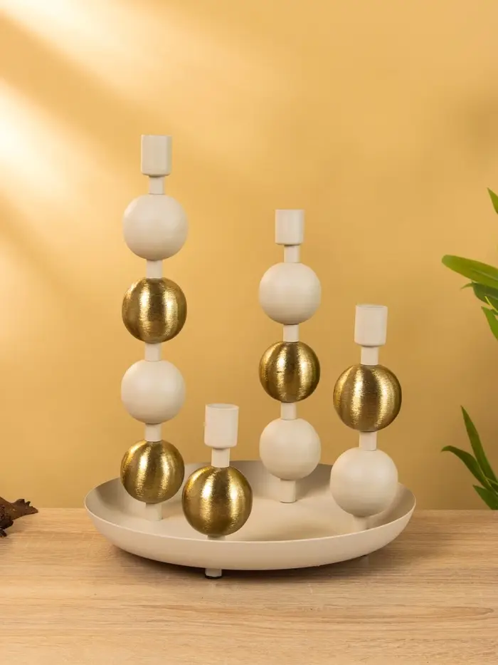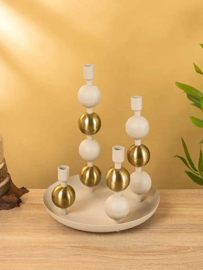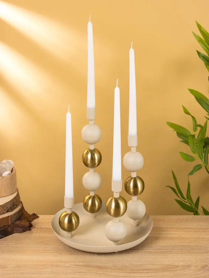 4 подсвечника на тарелке со сферами, фисташковый 25,5х22,5х32 см