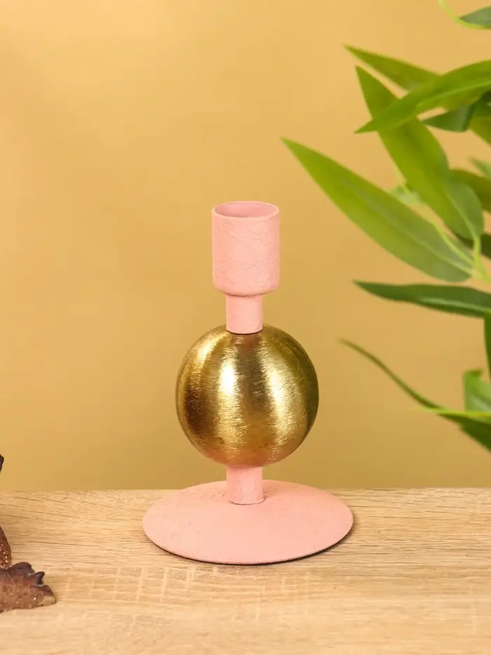 Подсвечник на 1 свечу текстурный "Пудровый" с 1 сферой 7,5х7,5х11,5 см