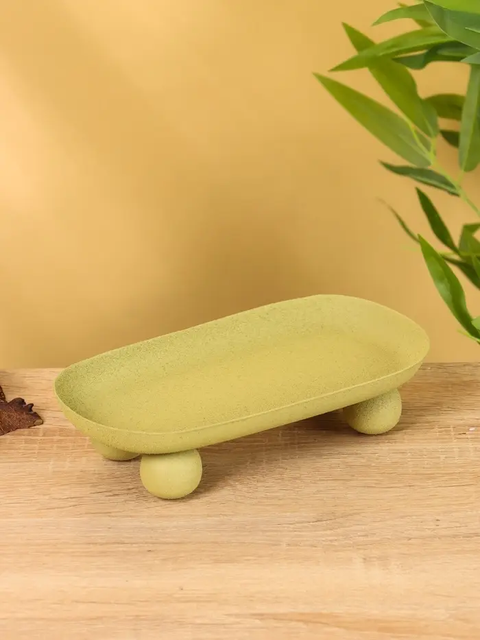 Блюдо сервировочное текстурное на золотых ножках сферах "Олива" 20х10,5х5 см