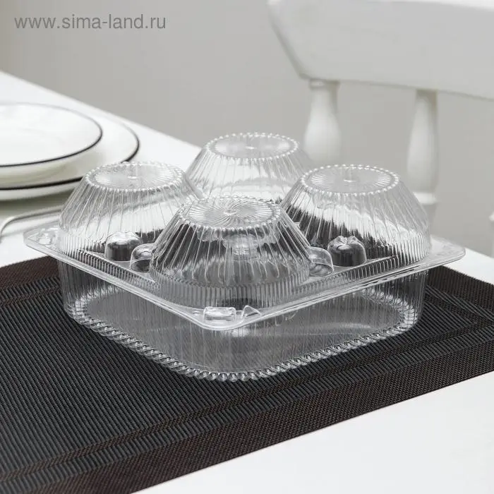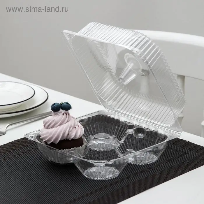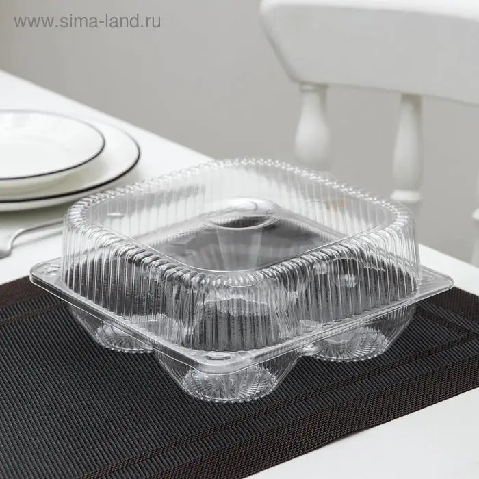 Контейнер одноразовый с неразъёмной крышкой ИП-2, для кондитерских изделий, пластик, 4 секции, 18.6×8.1 см, прозрачный