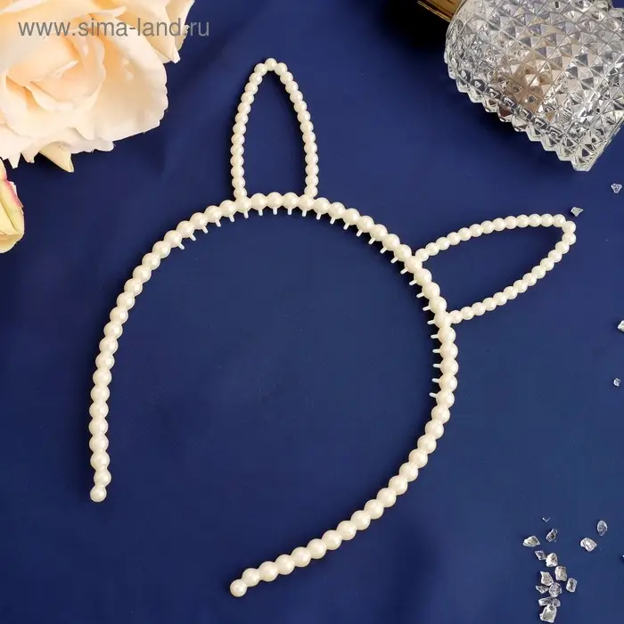 Ободок для волос "Жемчужиная бусинка" ушки, 0,5 см, белый