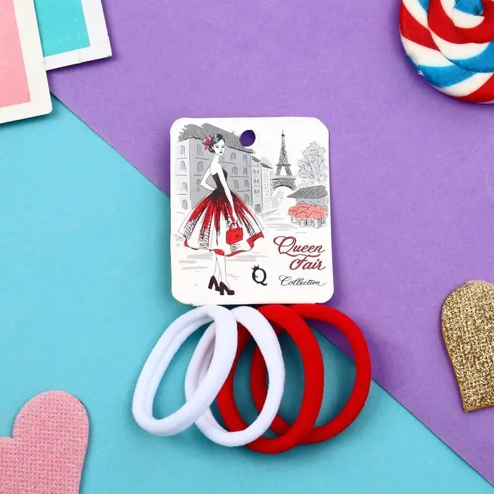 Резинка для волос "Марлен" (набор 4 шт) грация, 4 см, красный белый