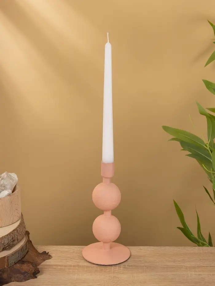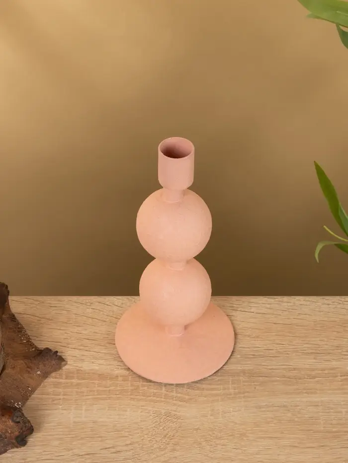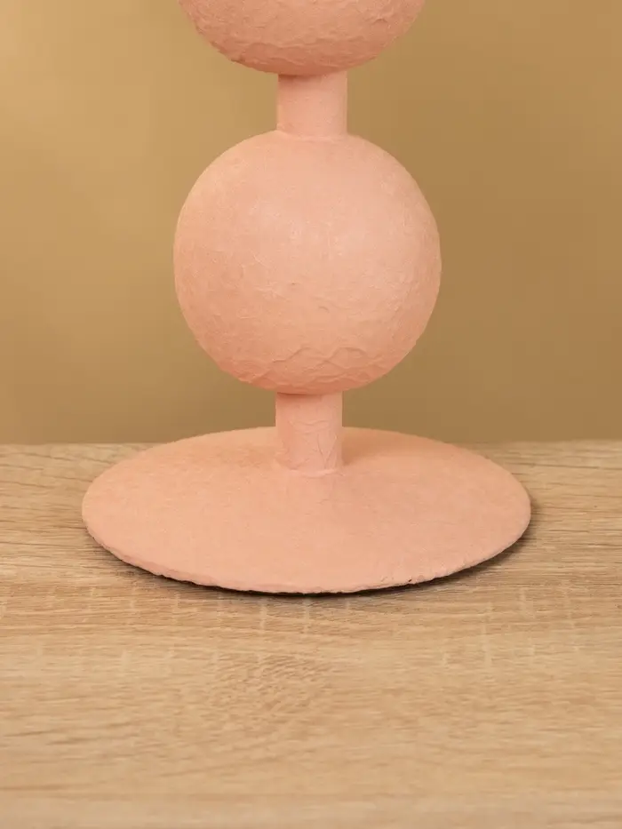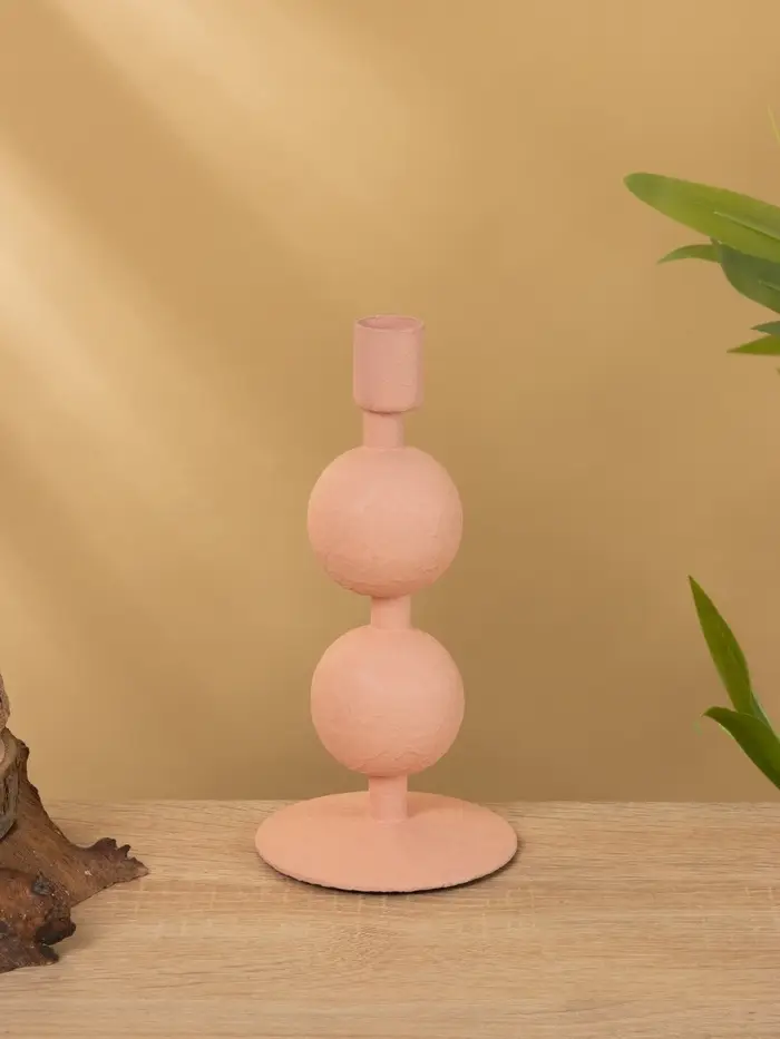 Подсвечник на 1 свечу текстурный "Пудровый розовый" с 2 сферами 8,5х8,5х18 см