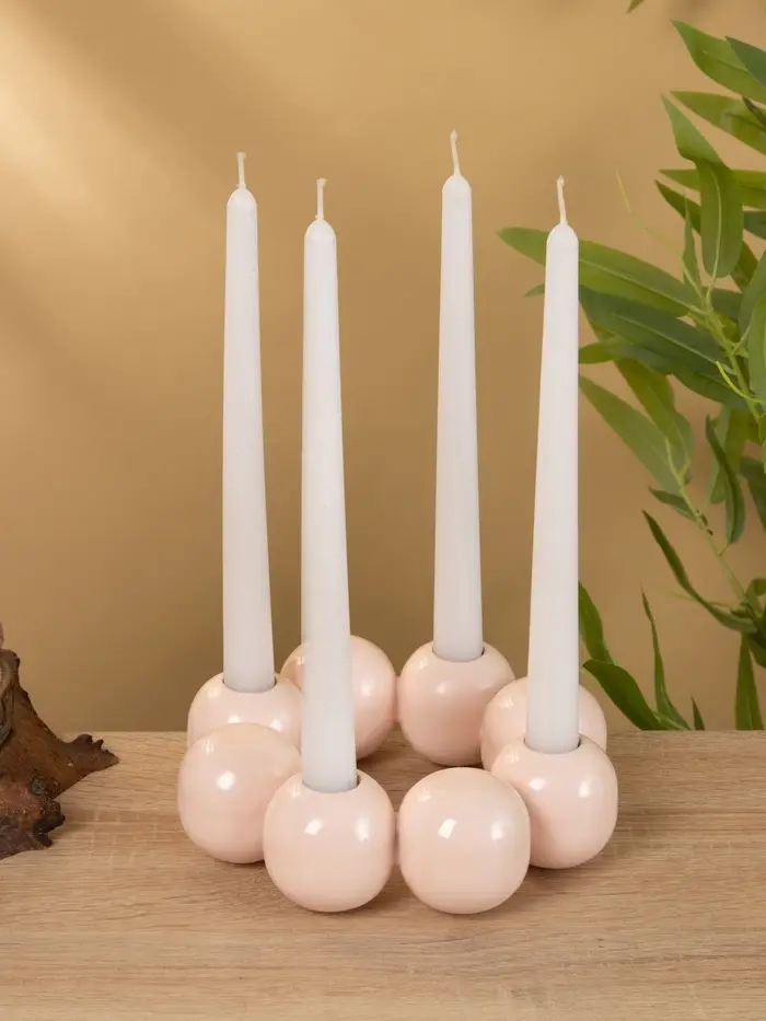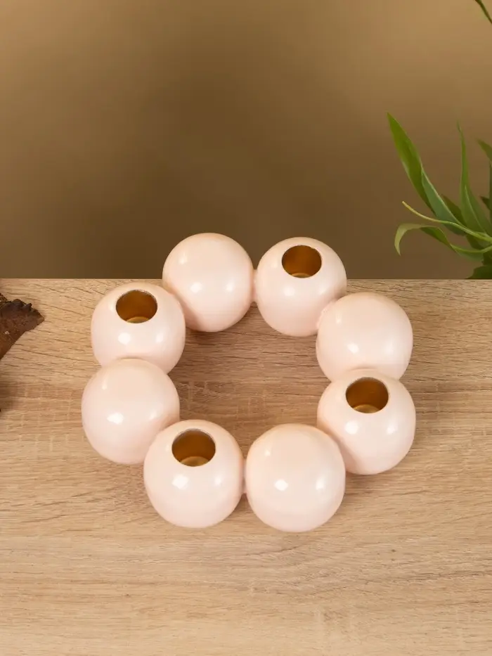 Подсвечник на 4 свечи "Бусы" с 8 сферами розовый 19х19х5,5 см