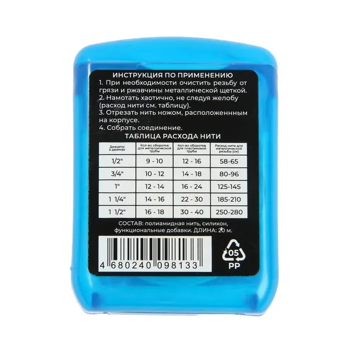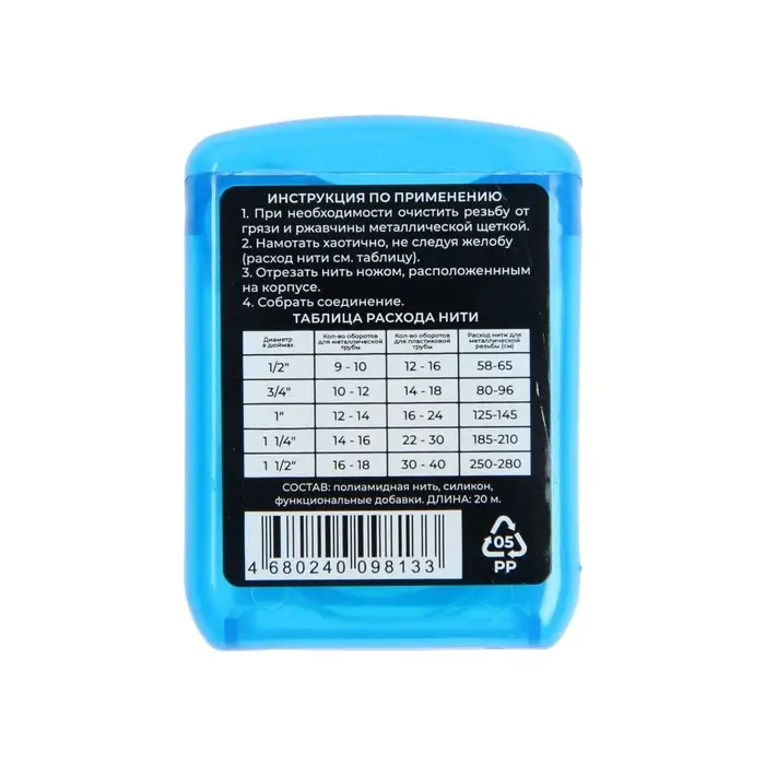 Сантехническая нить MasterProf предназначена для герметизации резьбовых соединений систем водоснабжения и отопления.