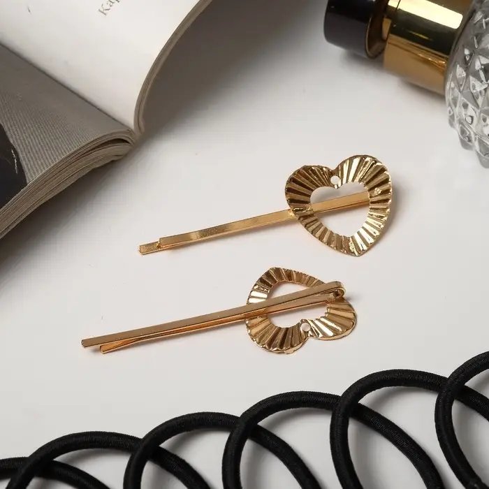 Набор для волос "Лиора" (8 резинок, 2 невидимки 5 см) сердечки, чёрно-золотой