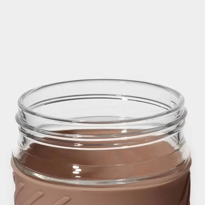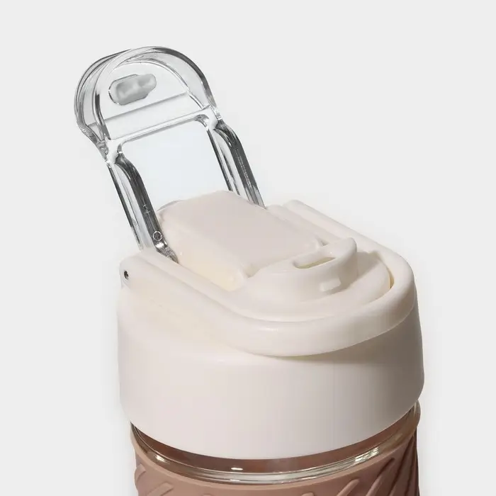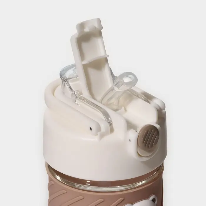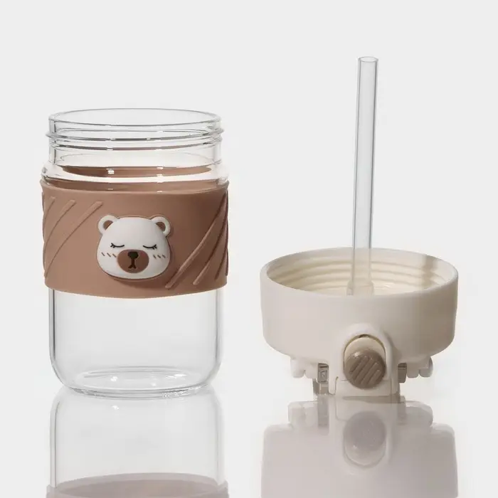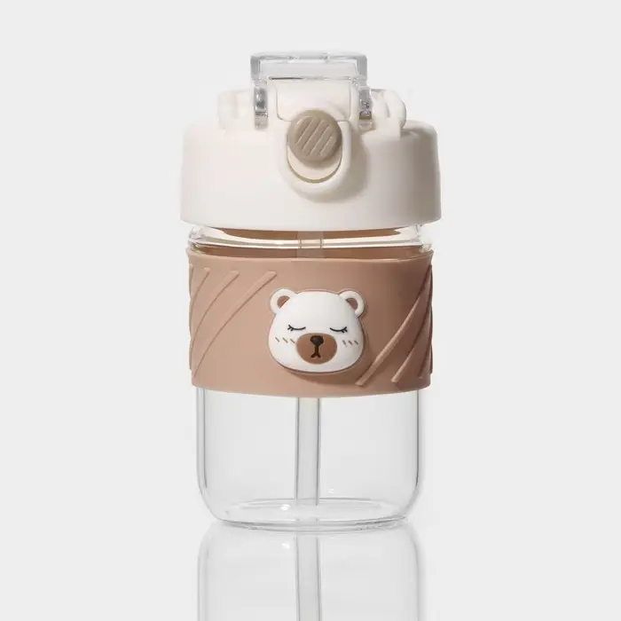 Бутылка для воды стеклянная, с крышкой и трубочкой «Бьорн», 400 мл, цвет бежевый