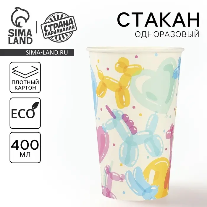 Стакан одноразовый бумажный «Воздушные шары», 400 мл