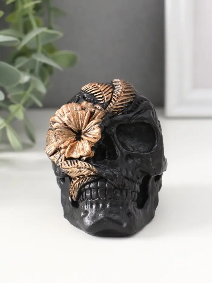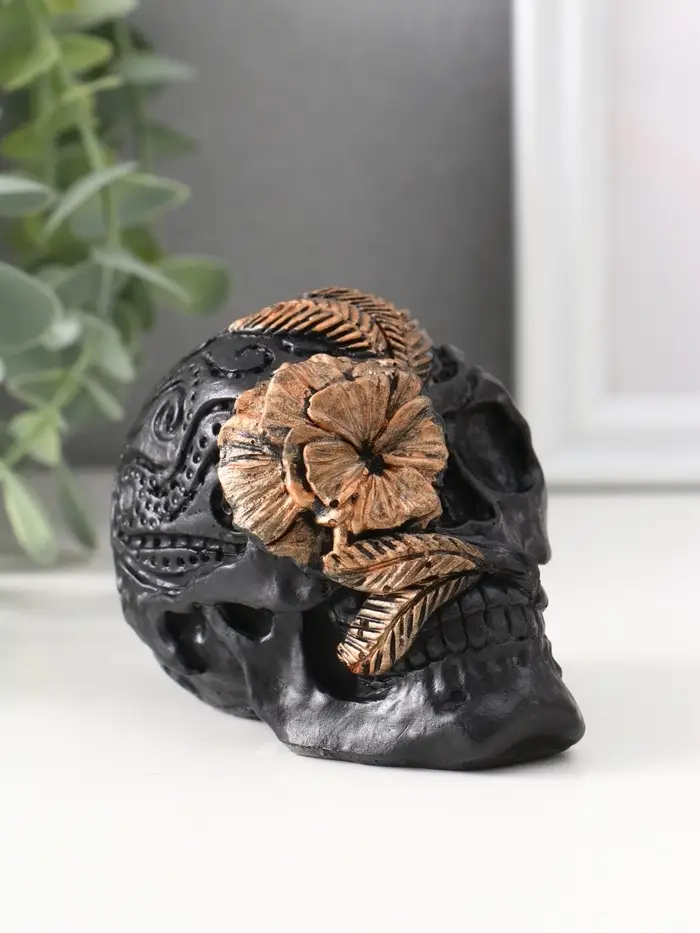 Фигура «Череп с цветком», 7×6×9 см, чёрная