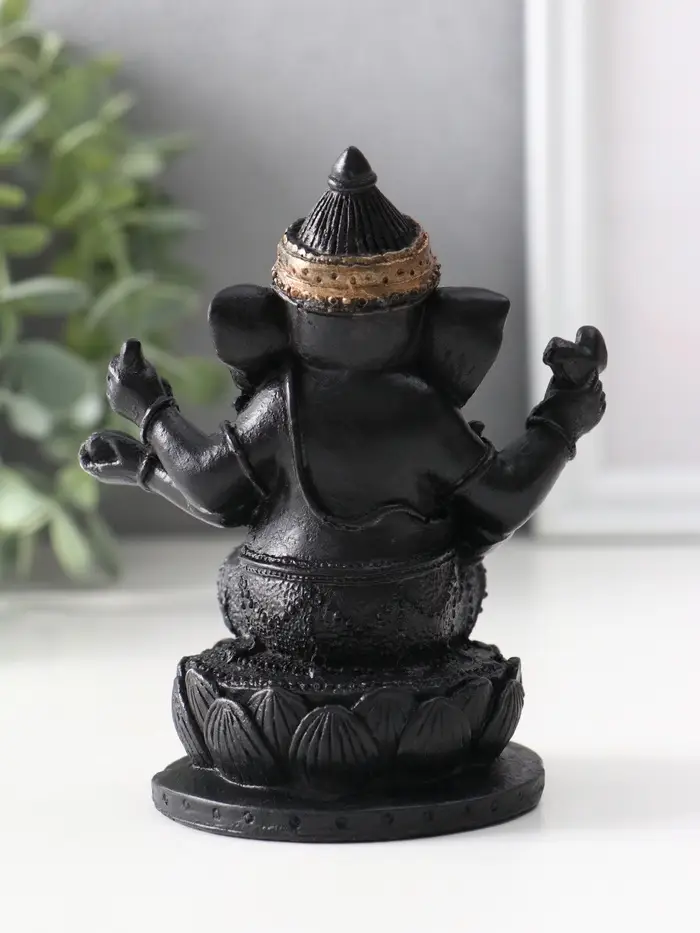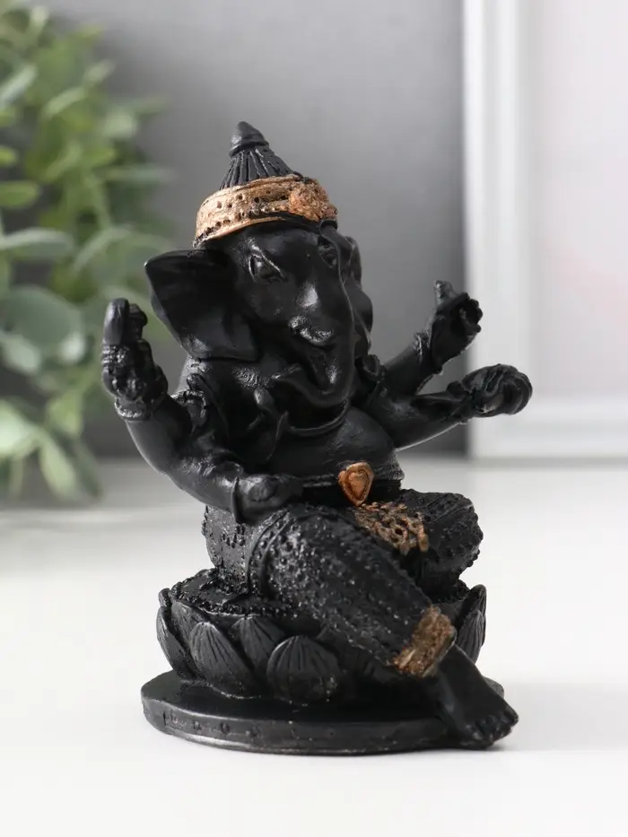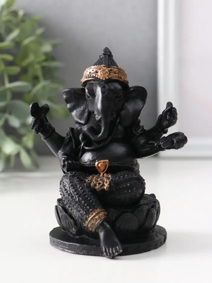 Фигура «Ганеш на лотосе», 10.5×9×8 см, чёрная
