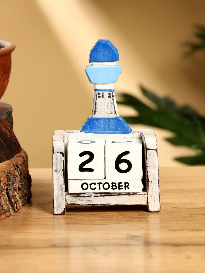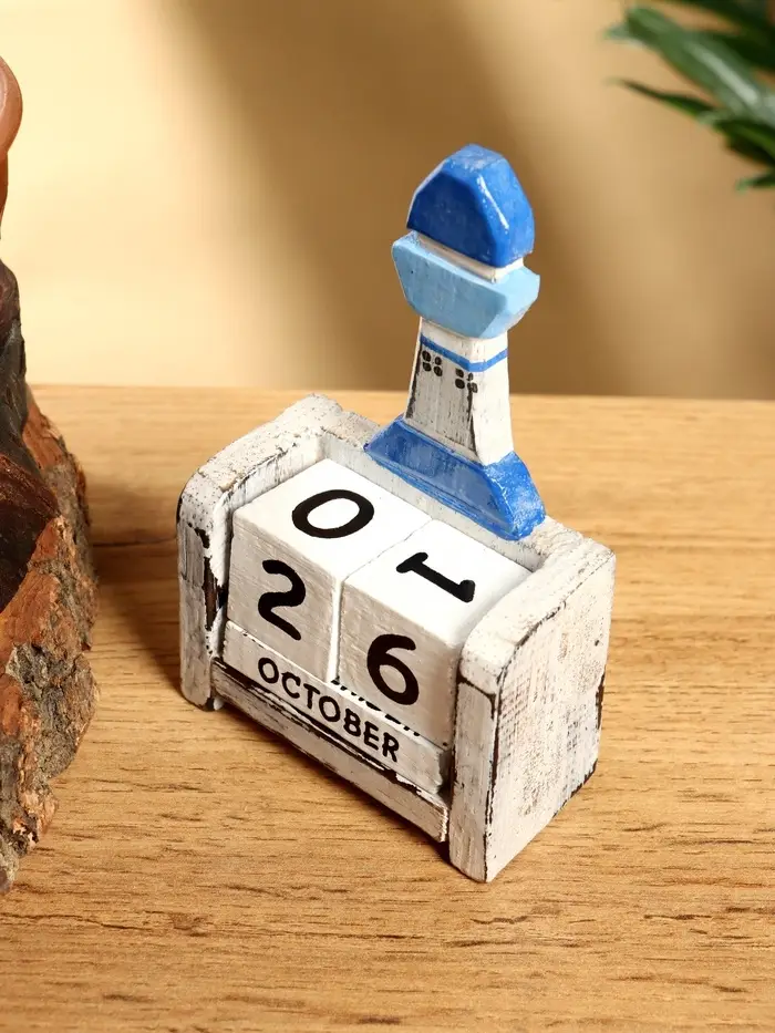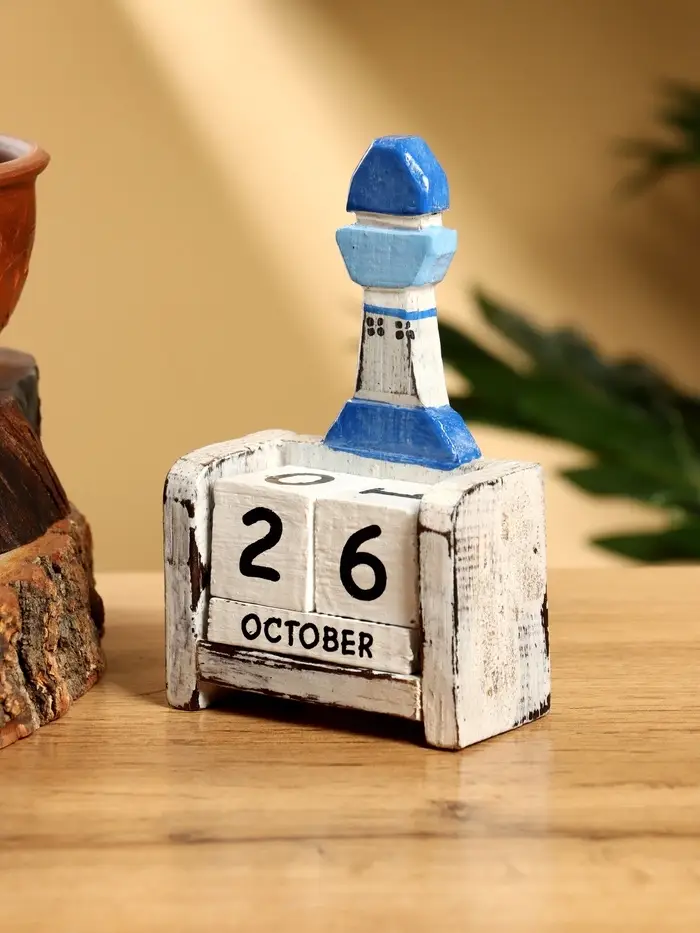 Календарь настольный «Маяк», 7×4×11 см, дерево, бело-синий
