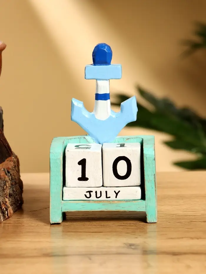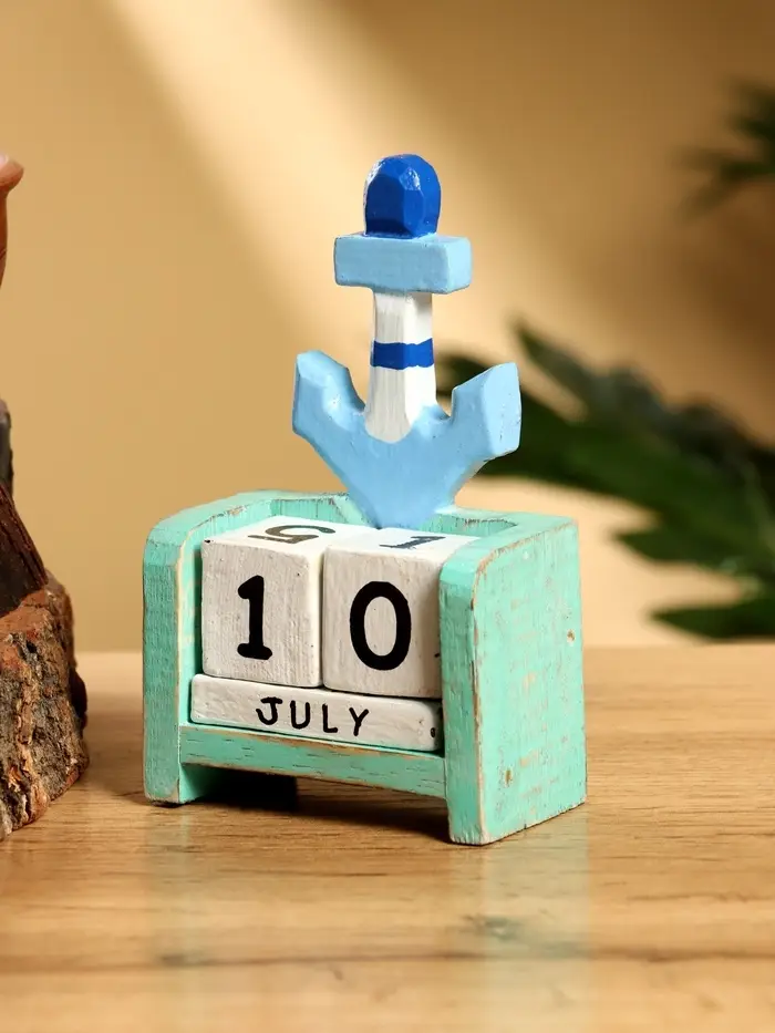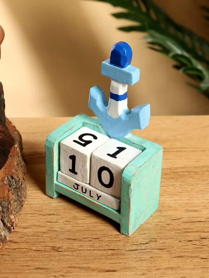 Календарь настольный «Якорь», 7×4×10 см, дерево, бирюзово-голубой