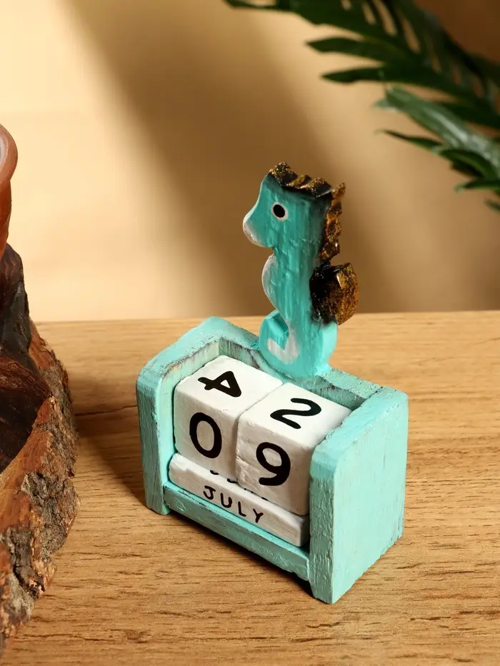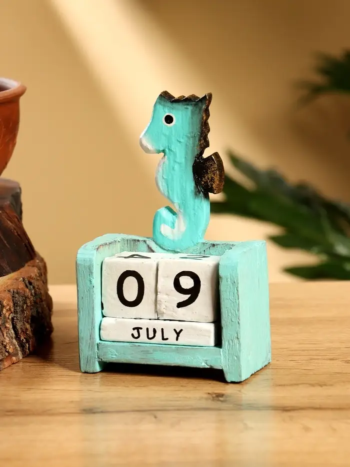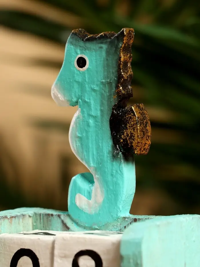 Календарь настольный «Морской конек», 7×4×10 см, дерево, бирюзовый