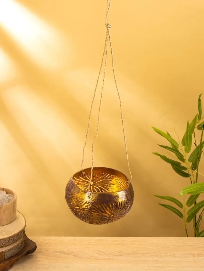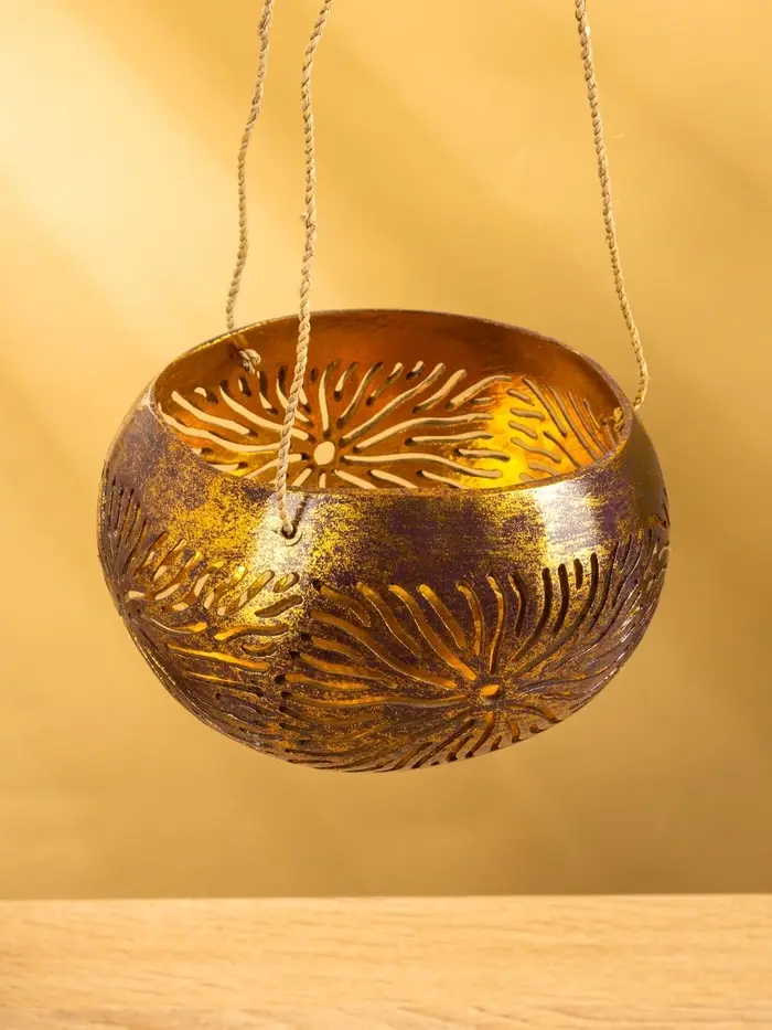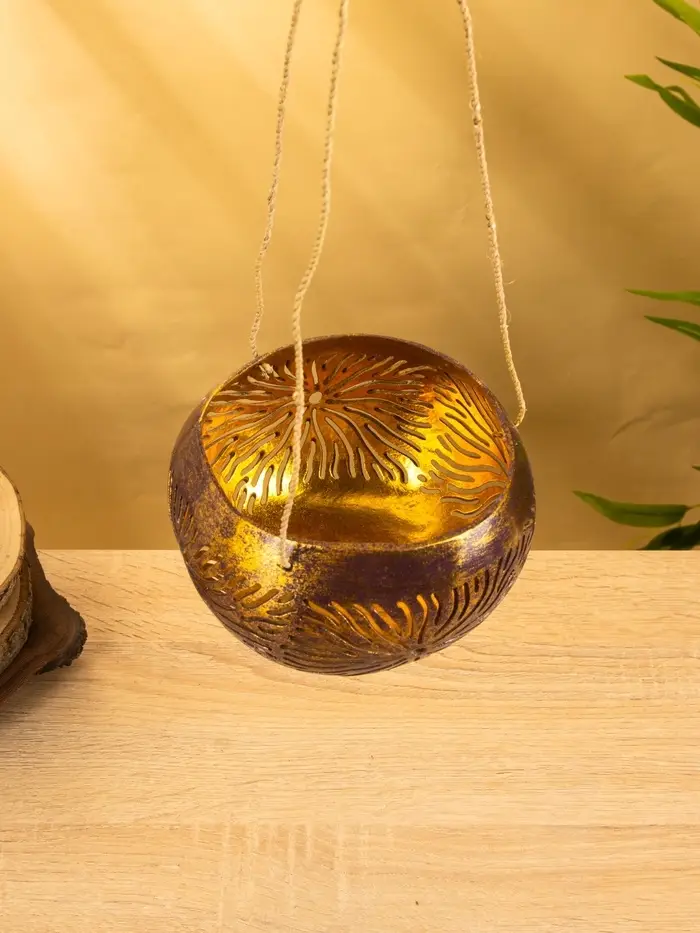 Подсвечник подвесной из кокоса, 14×14×10 см, золотой