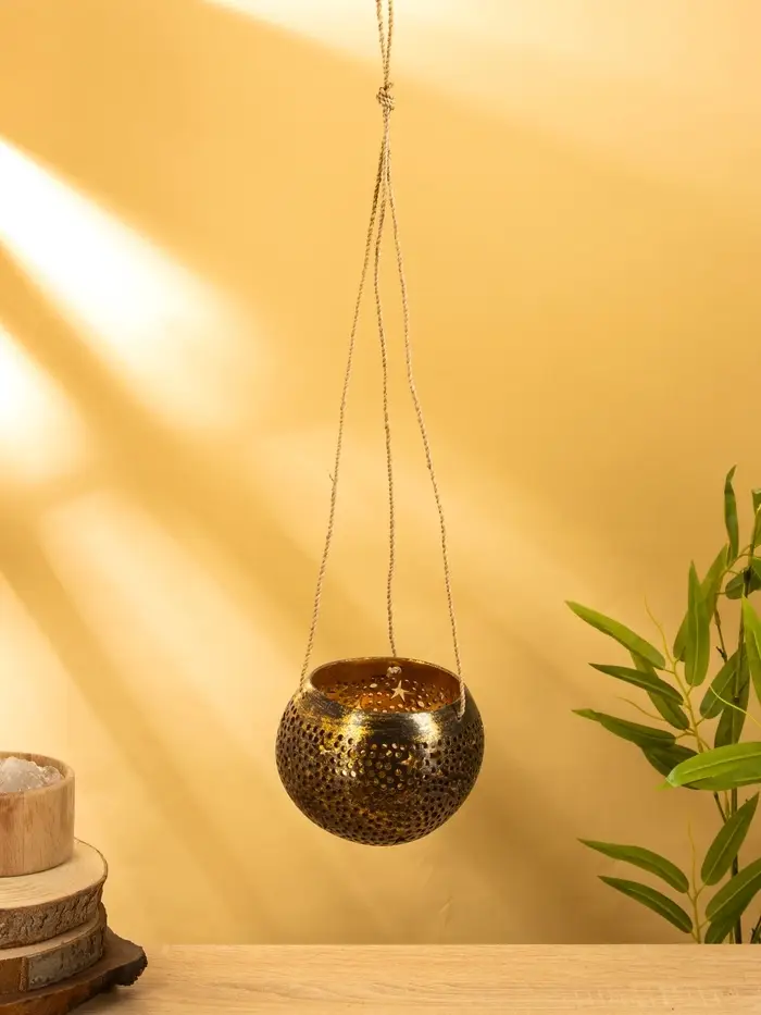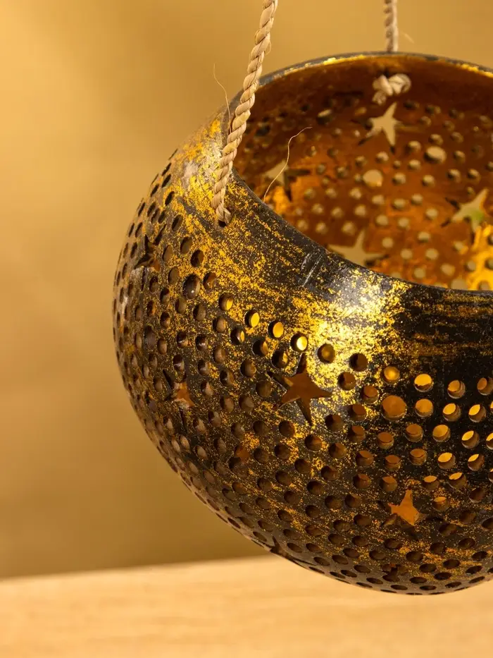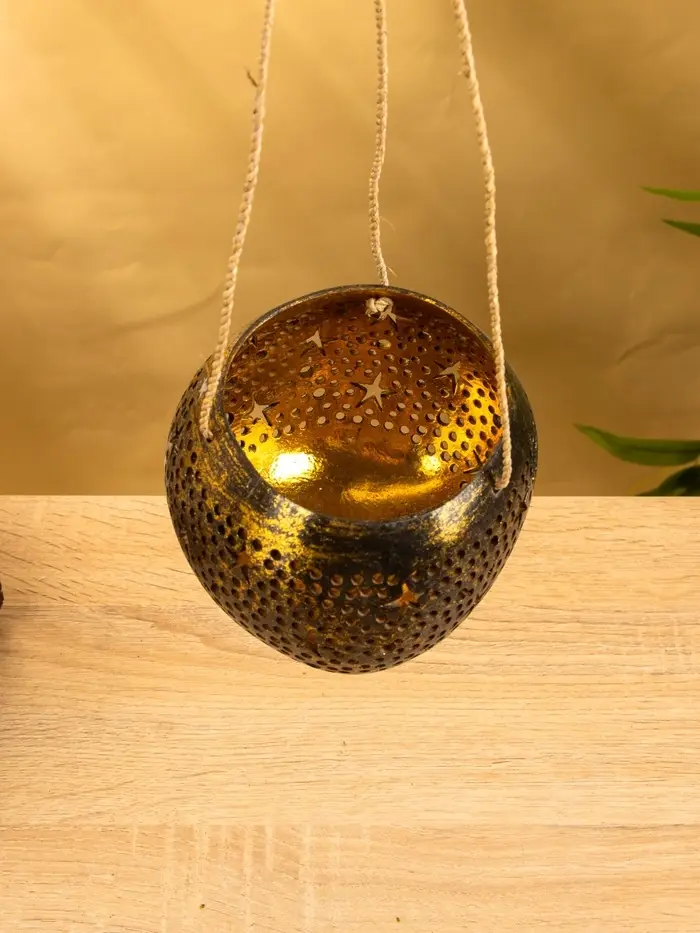 Подсвечник подвесной из кокоса, 14×14×10 см, чёрно-золотой