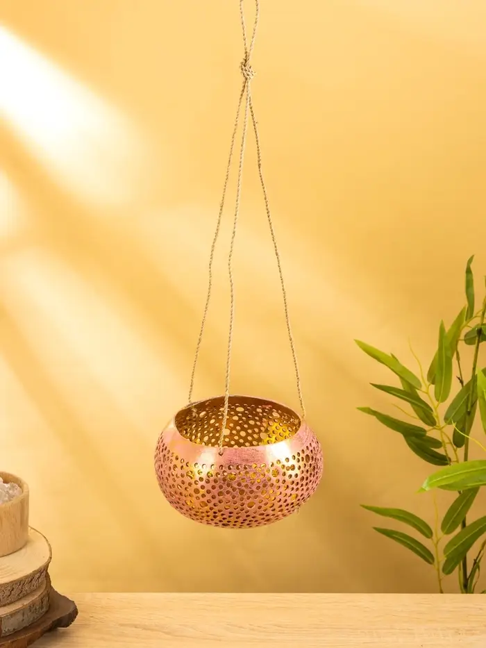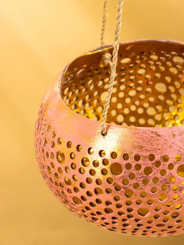 Подсвечник подвесной из кокоса, 14×14×10 см, тёмно золотисто-розовый