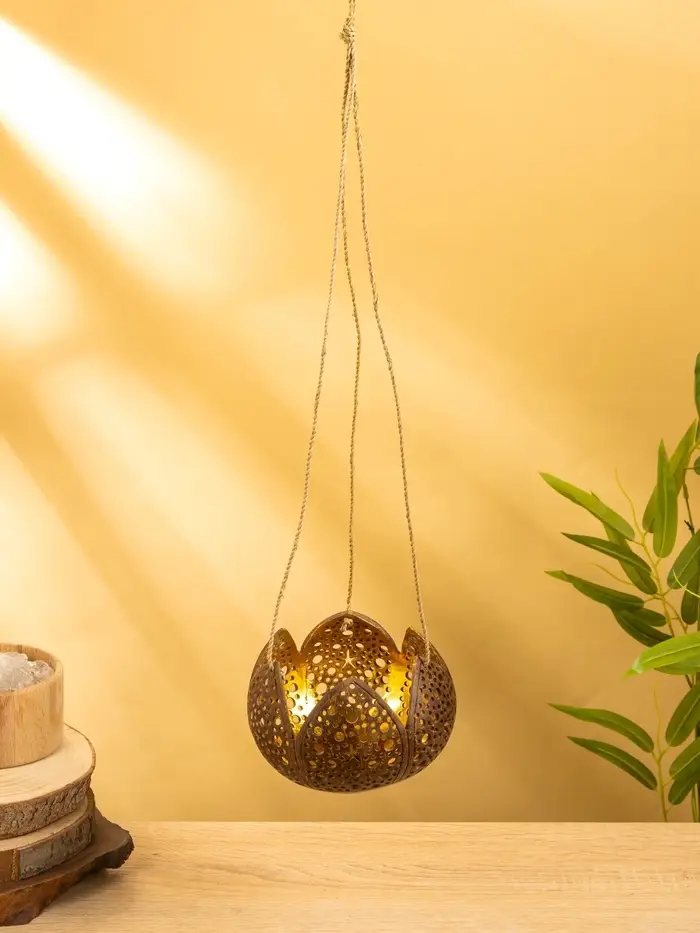 Подсвечник подвесной из кокоса «Бутон», 14×14×10 см, коричнево-золотой