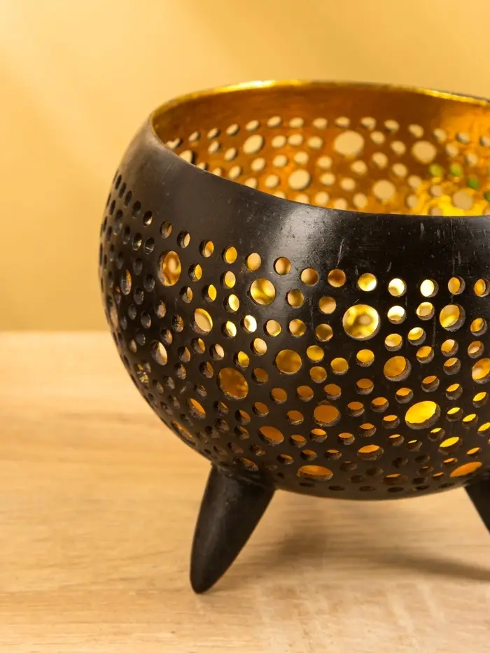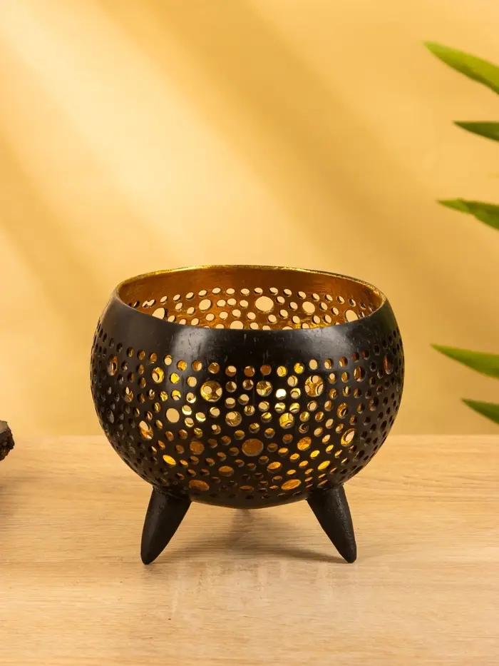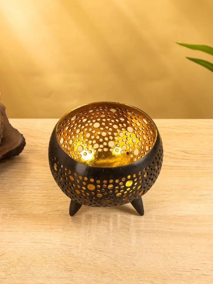 Подсвечник из кокоса, 15×15×13 см, чёрный