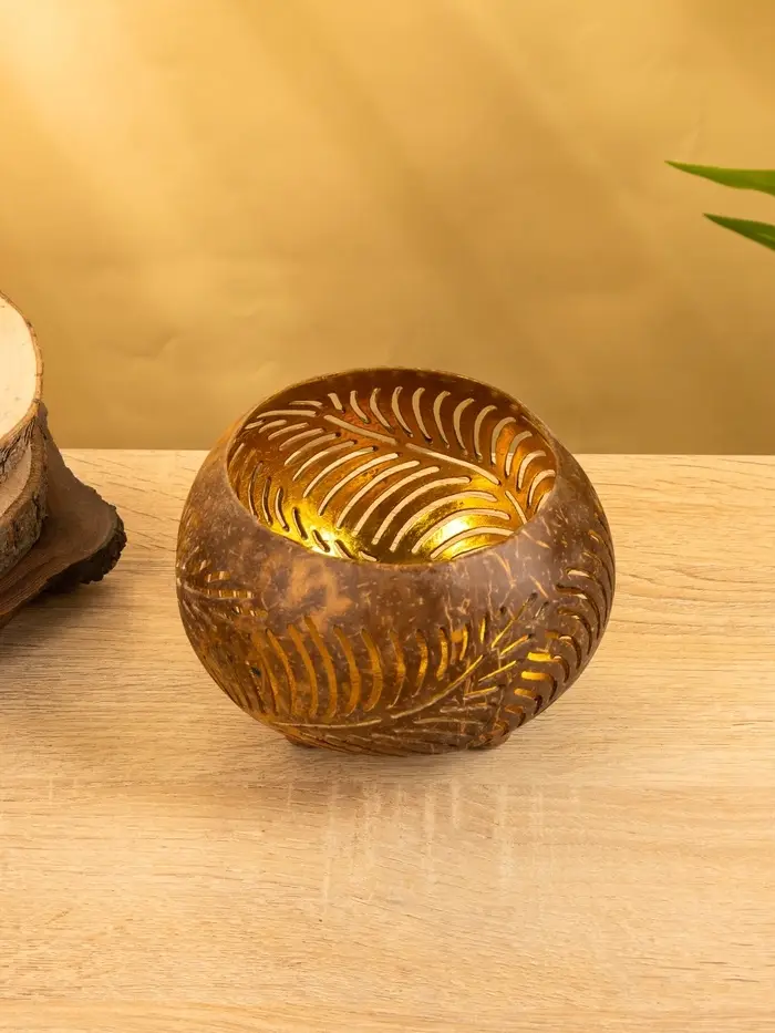 Подсвечник из кокоса, 15×15×13 см, коричневый