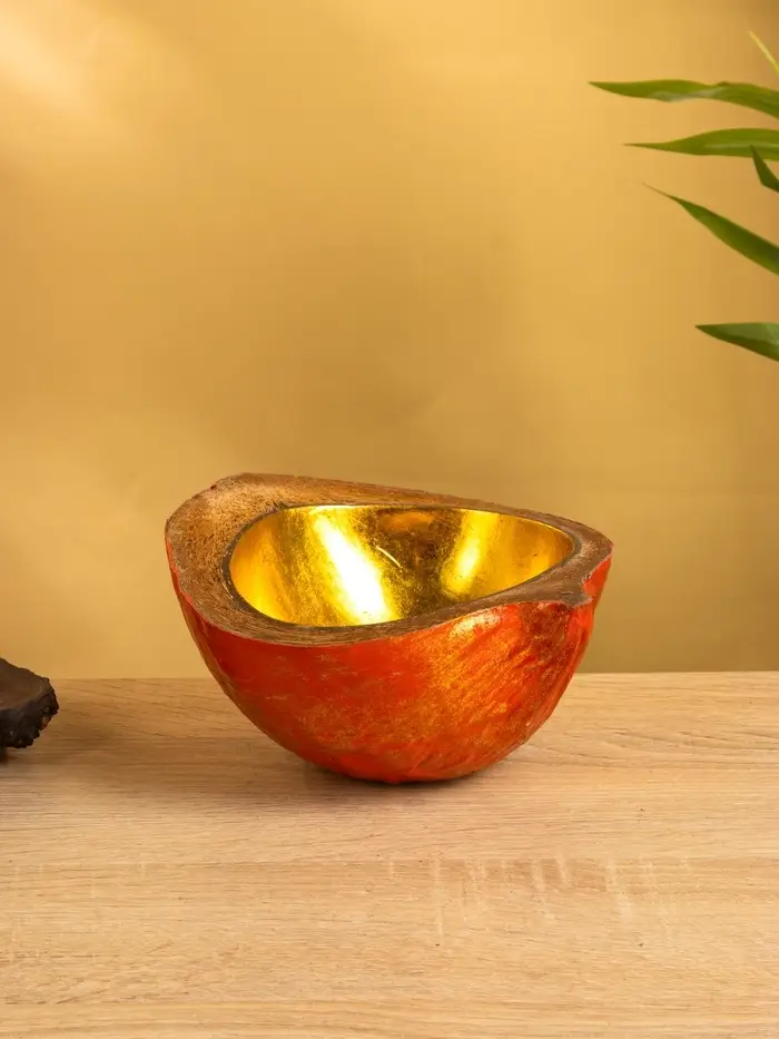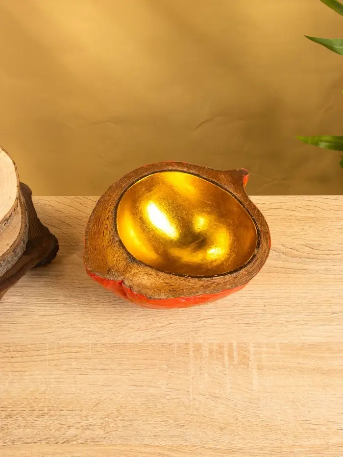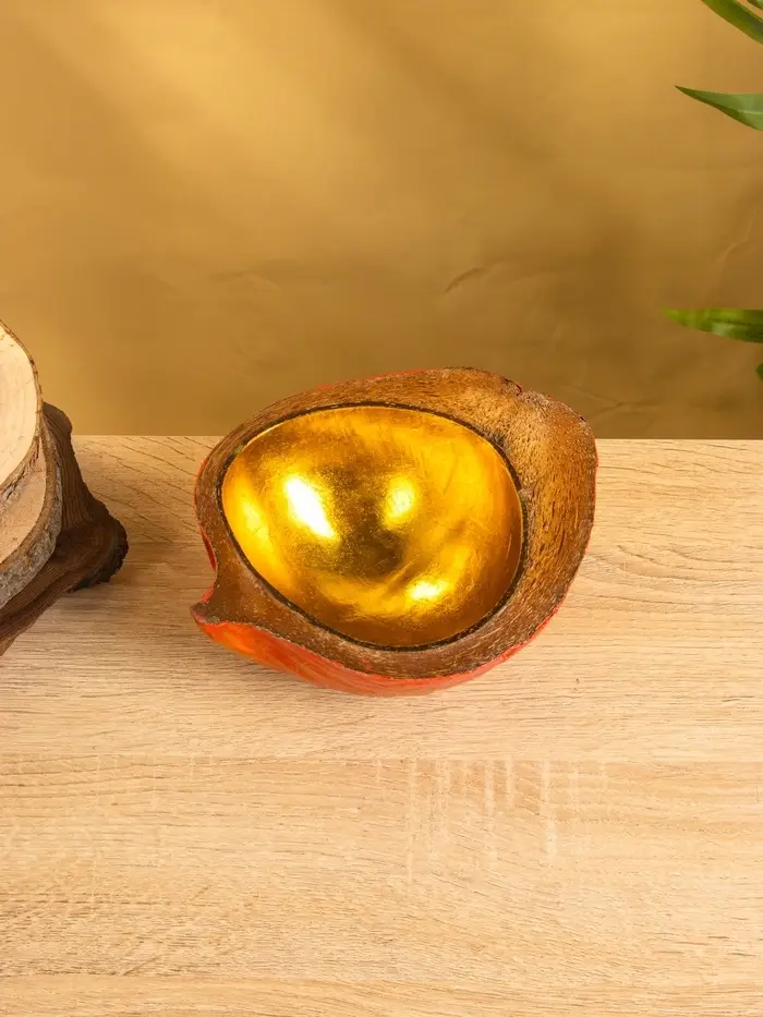Чаша из кокоса, 19×22×10 см, красно-золотая