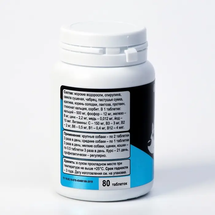 Мультивитамины "Железо" для кошек и собак, натуральная формула, 80 таб