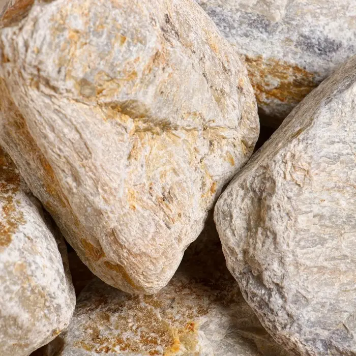Для бани и сауны подходят лишь те камни, которые не трескаются от перепадов температуры и не выделяют вредных веществ. Одной из таких пород является кварцит. Минерал при резком охлаждении водой наполняет парилку озоном, который насыщает кровь кислородом, улучшает самочувствие и стимулирует работу мозга. Также при перепаде температуры кварцит генерирует электромагнитные колебания, которые восстанавливают энергетическую систему человека.