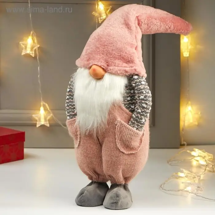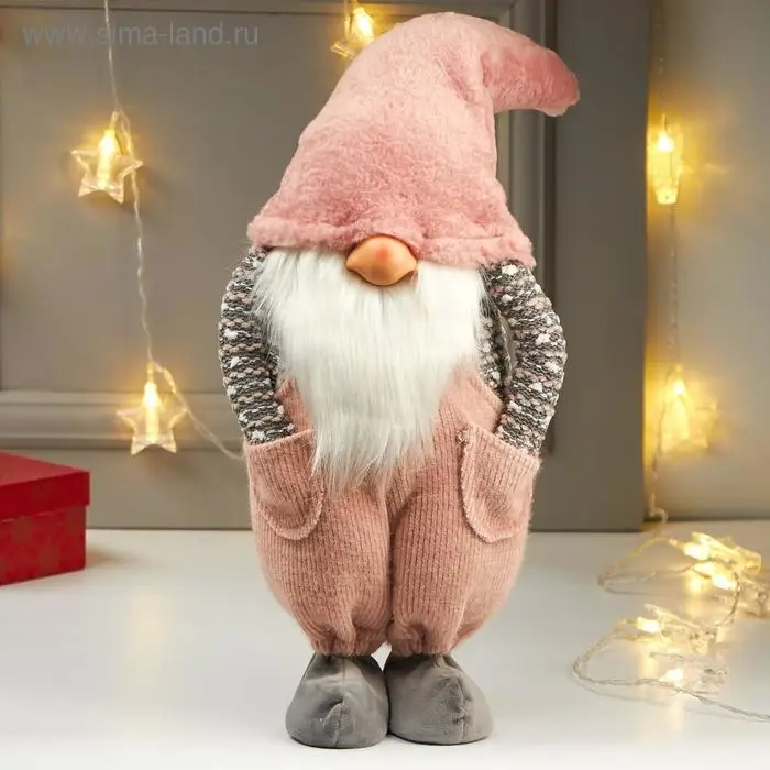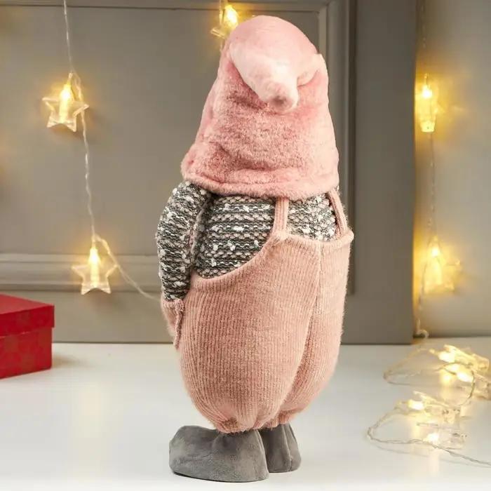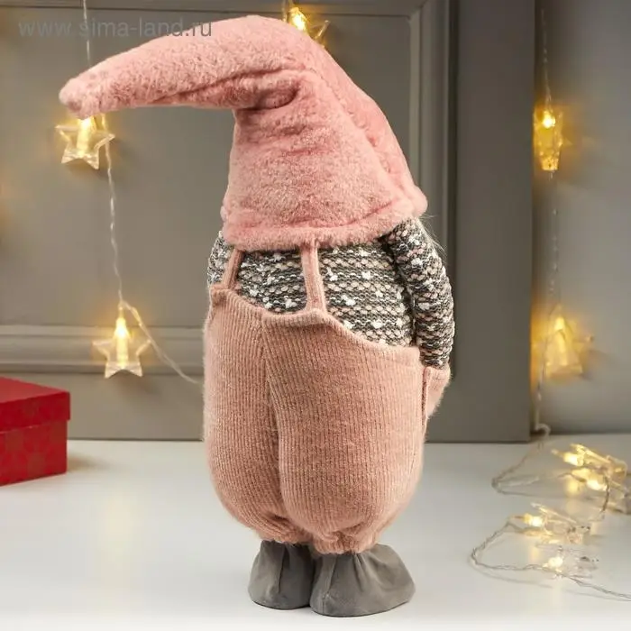 Кукла интерьерная "Дедушка в розовом колпаке и комбинезоне" 57х16х22 см