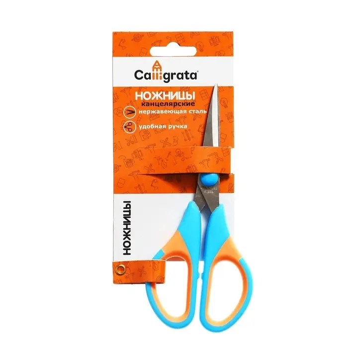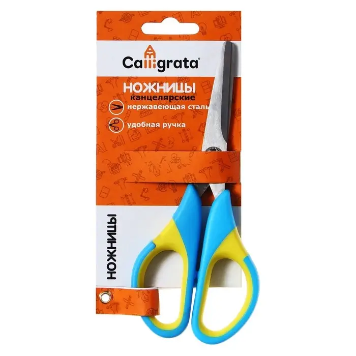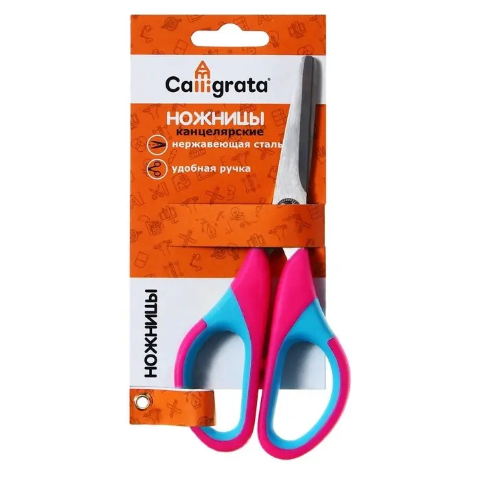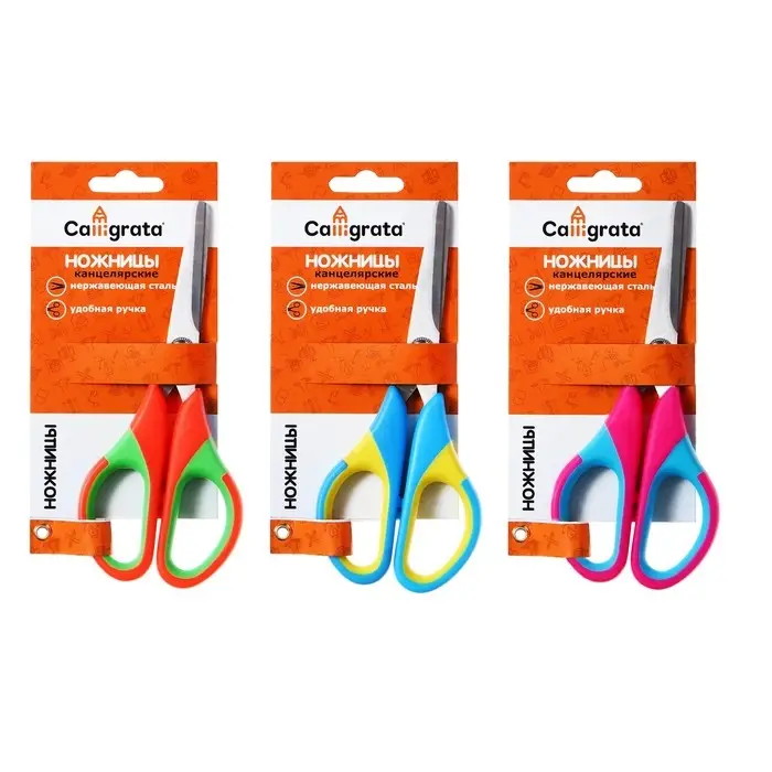 Ножницы канцелярские 14 см Calligrata, пластиковая ручка, резиновые вставки, микс