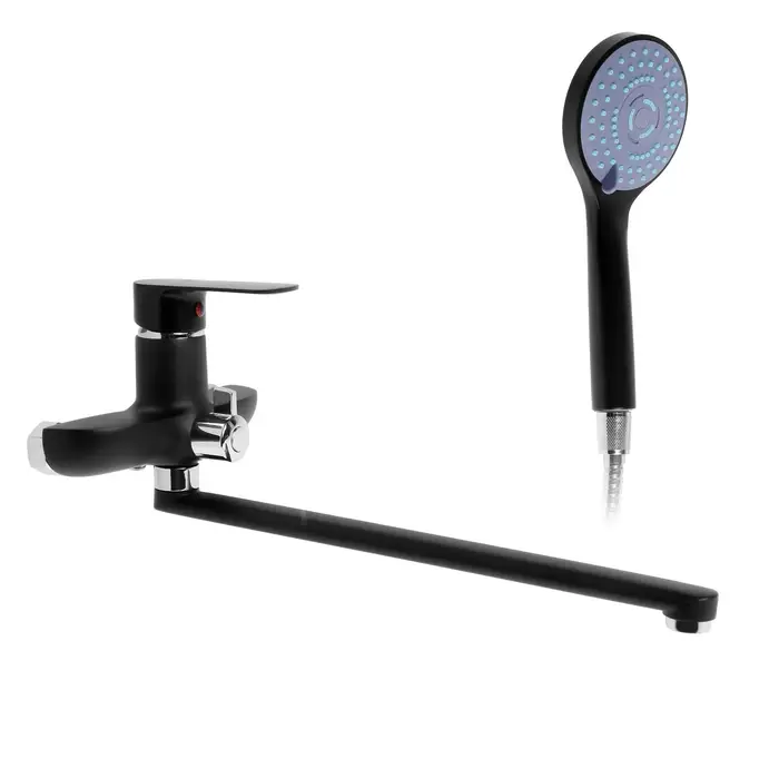 Смеситель для ванны ZEIN Z2493, излив 35 см, картридж 35 мм, с душ набором, черный/хром