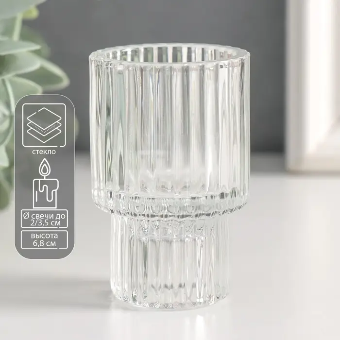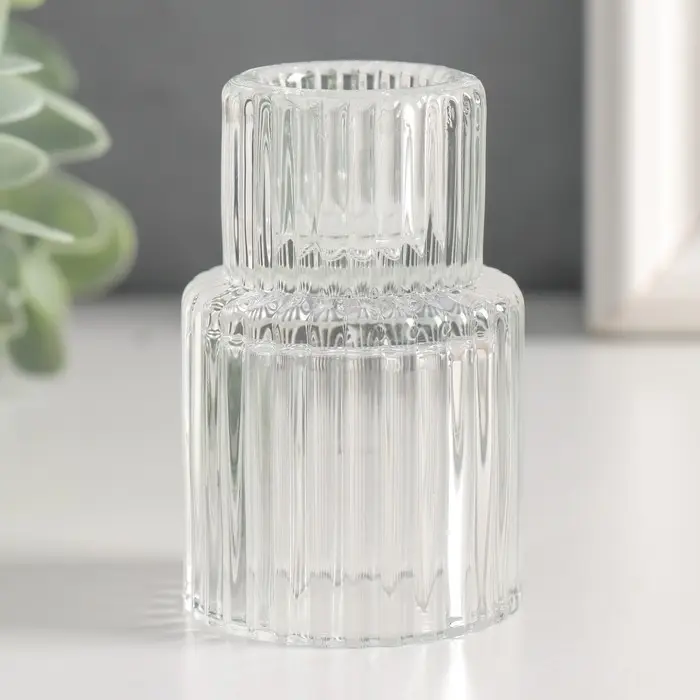 Подсвечник стекло "Цилиндр. Столбик" двухсторонний прозрачный d- 2 и 3,5 см 4,2х4,2х6,8 см