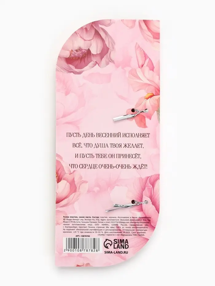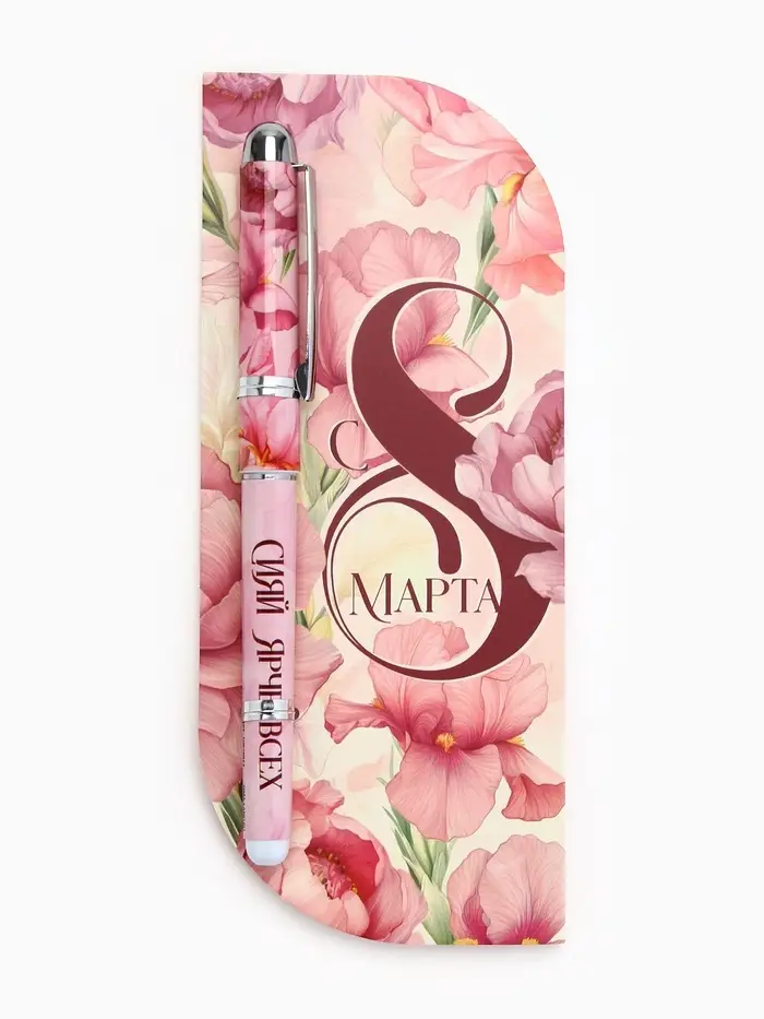Ручка в открытке "С 8 Марта", шариковая, синяя паста, 1,0 мм