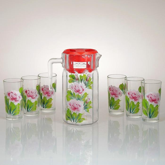 Набор для сока "Розочка" художественная роспись, 6 стаканов 1250/200 мл