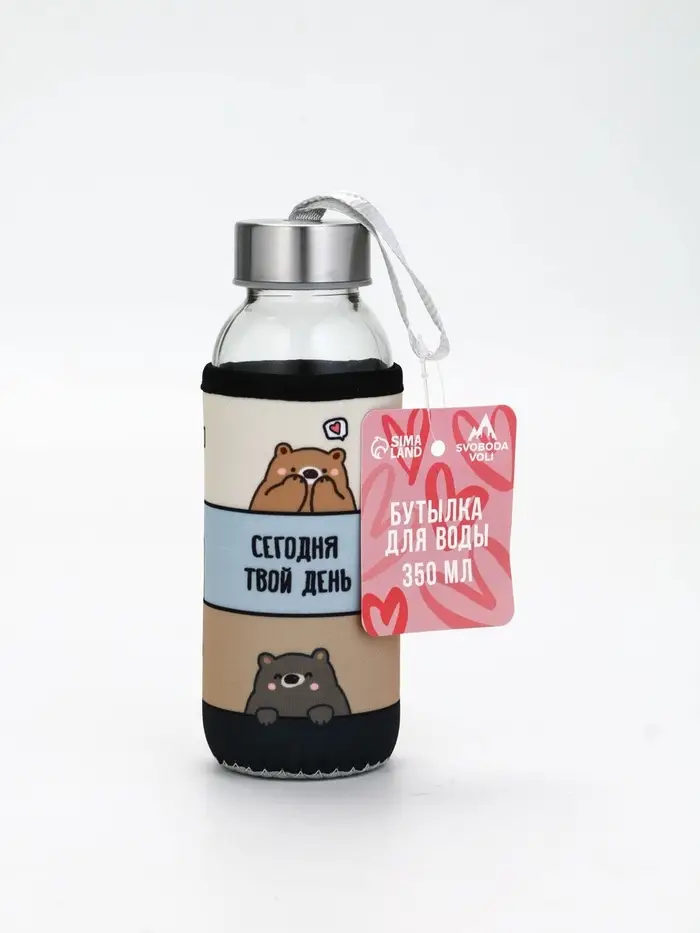 Бутылка стекло в чехле "Хорошего дня", 350мл