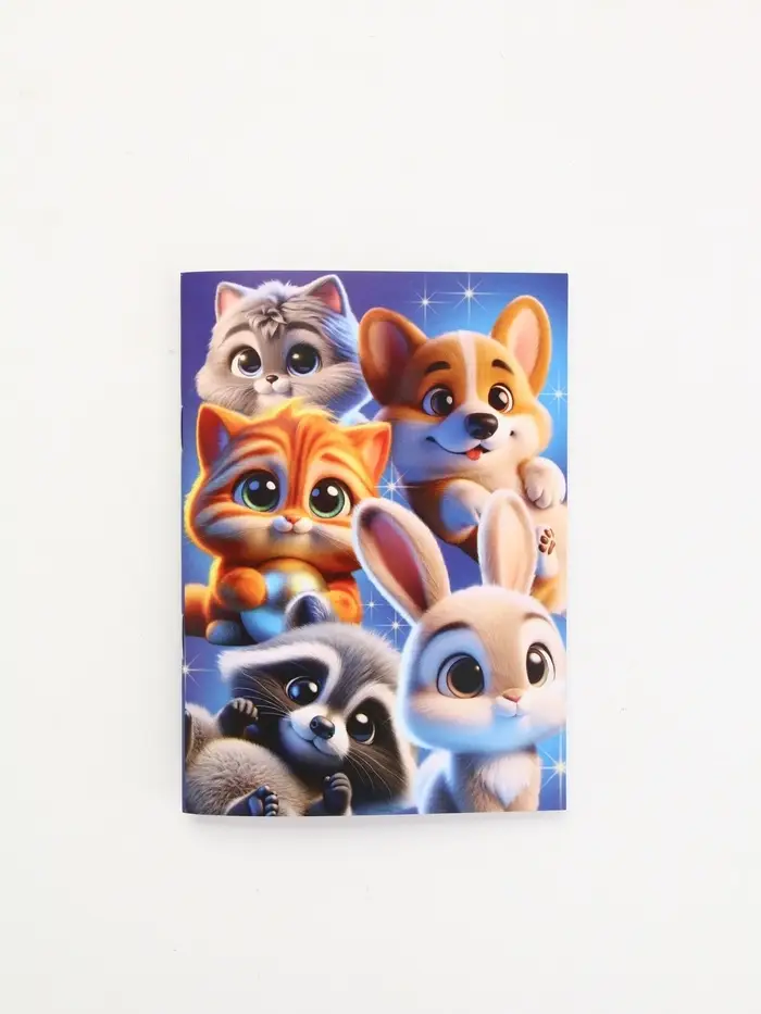 Блокнот А6, 32 л на скрепке, в клетку "Пушистики"